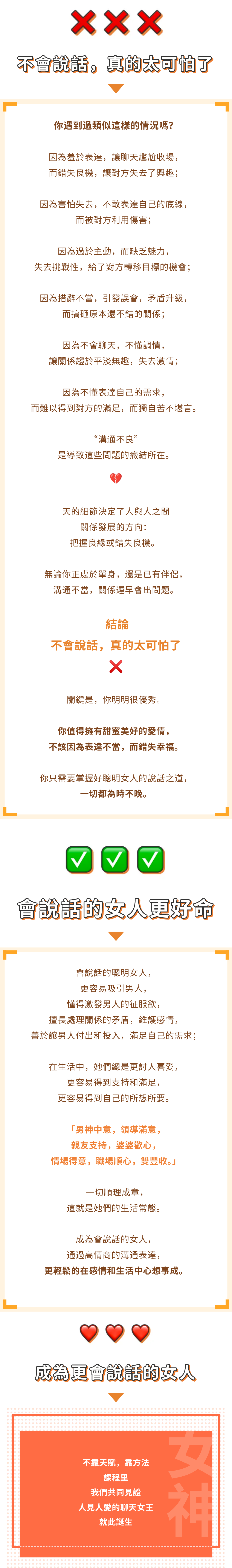 【聊天女王】會說話的女人最好命(200+溝通技巧) 讓他愛上和你聊天,越聊越離不開你。輕鬆把曖昧推進成關係、學會調情讓他主動追你、告別尬聊冷場、總有話題可聊、知道怎麼回他的信息、任何棘手問題都能高情商回應。200個話術、劇本和具體例子,靠聊天讓他徹底愛上你。 購買課程 免費試聽